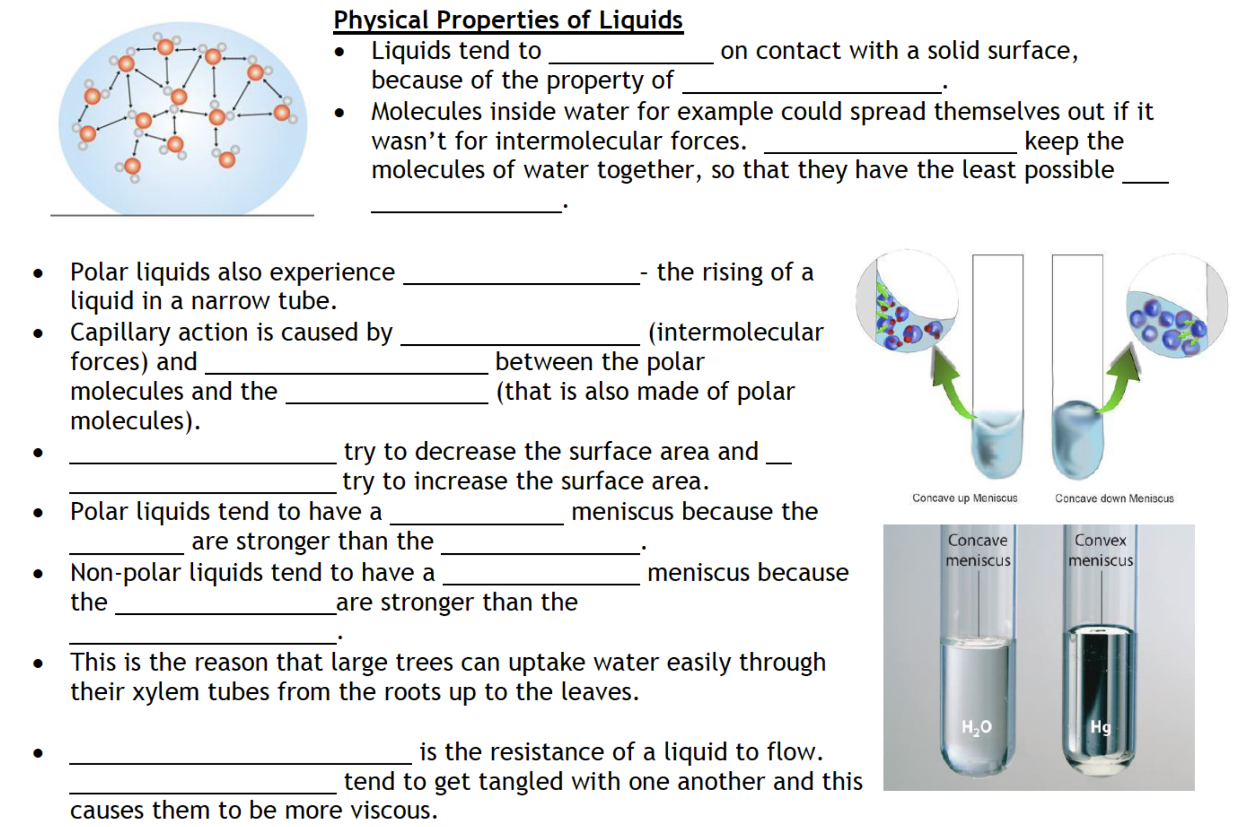 1. Read textbook pg245 - 246 Physical properties of liquid