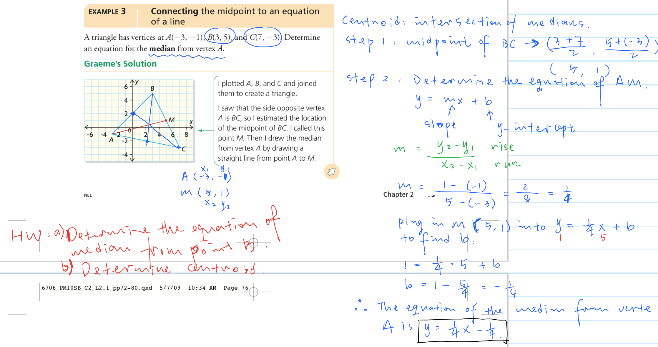 ***Also work on example 3, determine the equation of median from vertex B and coordinate of centroid.