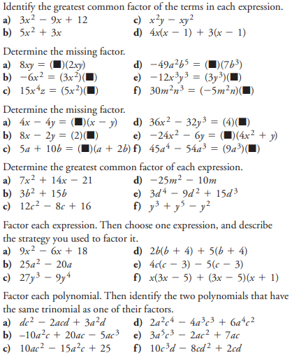 Lesson 4.1 - Common Factors in Polynomials