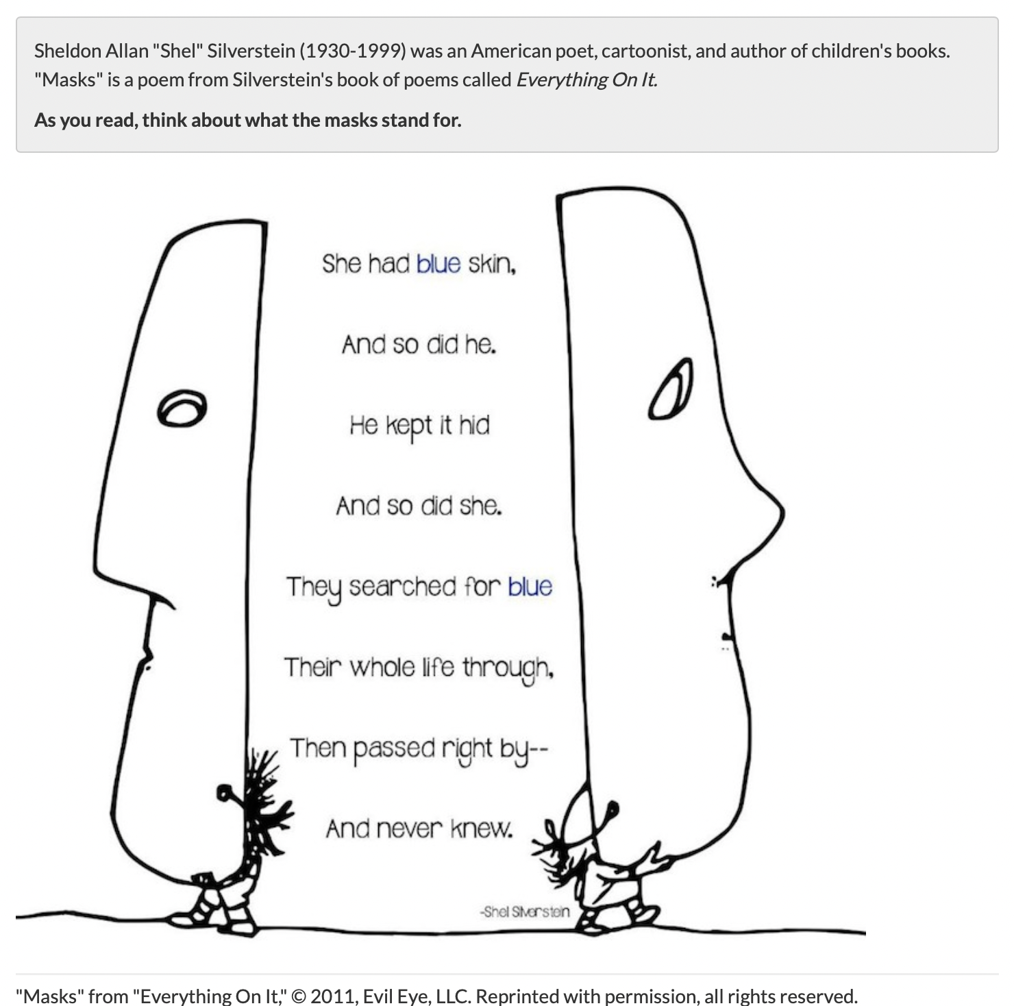 5. In the poem, the two characters hide their blue skin from others. In your opinion, why do they hide this quality?