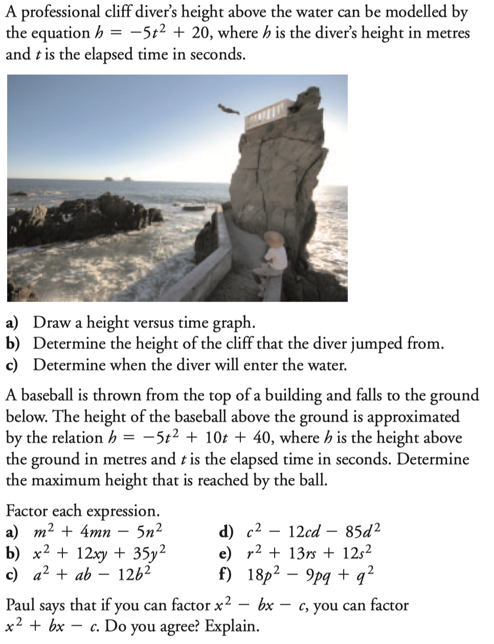 Lesson 5.4 - Solving Problems Using Quadratic Relations