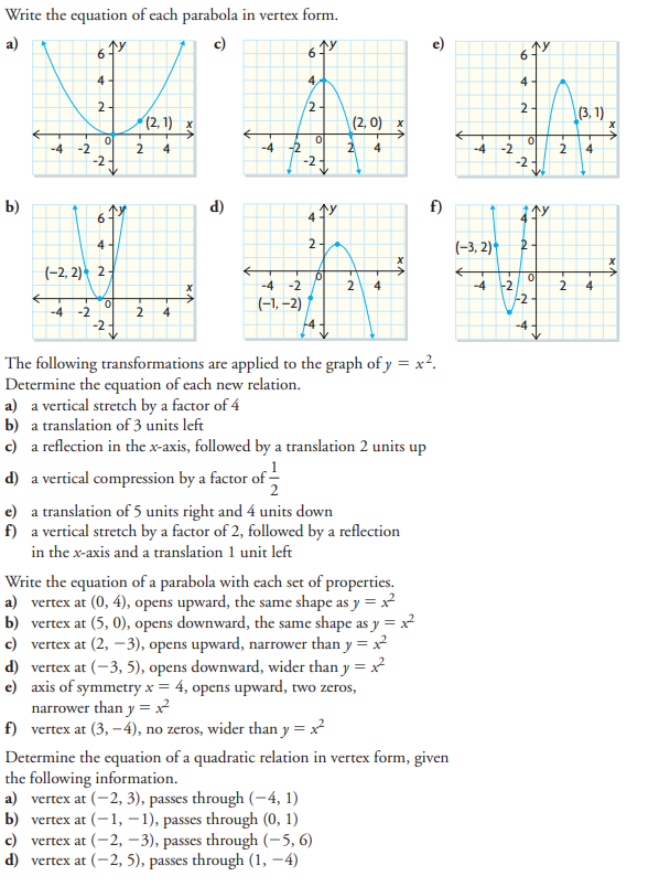 Lesson 5.4 - Solving Problems Using Quadratic Relations