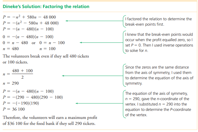 Selecting a strategy to analyze a quadratic relation