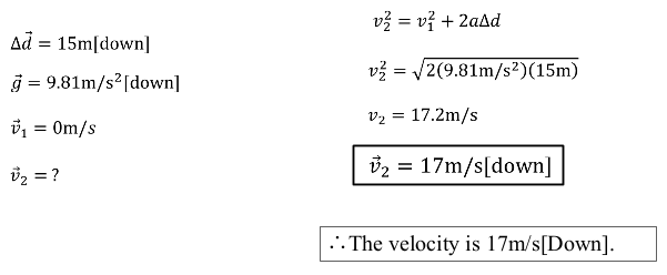 A stone falls from rest off of a 15m bridge. What velocity does the rock hit the water?