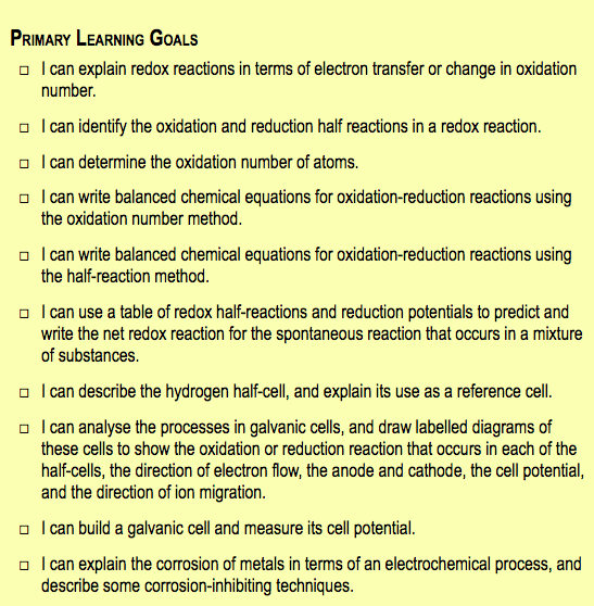 Unit 5 - Electrochemistry (20 hours)