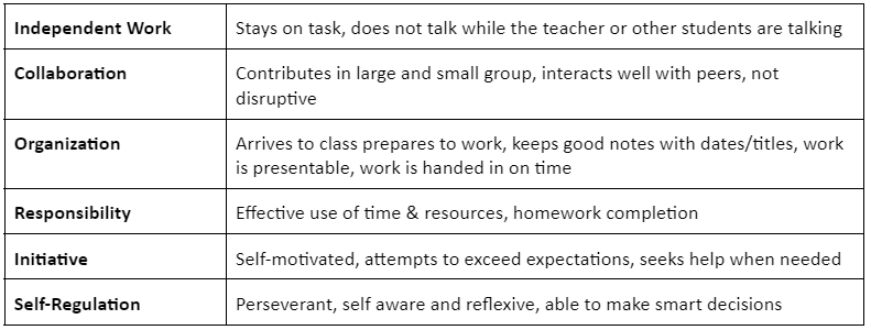 LEARNING SKILLS & WORK HABITS