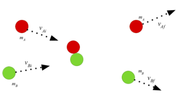 Consider two objects, \( m_A \) and \( m_B \), colliding.