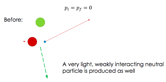 To conserve momentum Wolfgang Pauli theorized that there had to be a weak interacting, light particle present in the collision. He called it a neutrino (small neutral particle in Italian).