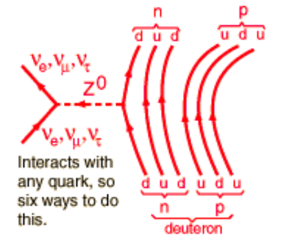 Another possible neutrino reaction is mediated by the \( Z^0 \) boson and is thus doesn't change the quark flavour.