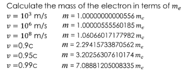 \( m(v)=m_o \frac{1}{ \sqrt[]{1- \frac{v^2}{c^2} } } \)