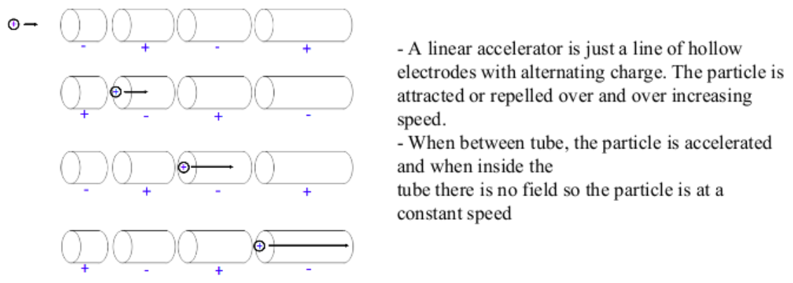 Cyclotrons are limited to low energy particles. To achieve higher speeds a simple method was devised: the linear accelerator.