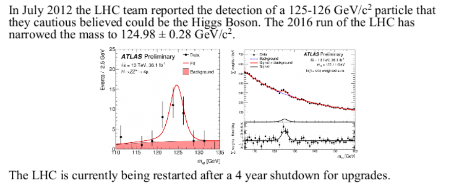 The LHC is also investigating Quark-Gluon Plasmas or Quark-Gluon Soup by colliding lead ions together at temperature of 150 MeV.