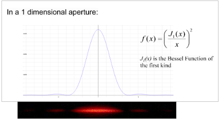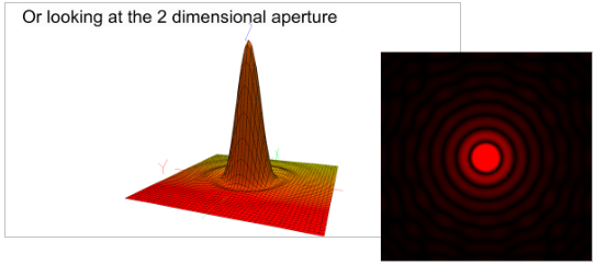 If we consider a circular aperure, then the intensity of light behind the aperture will create a ring shaped pattern referred to as an Airy Disc