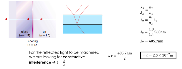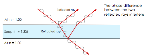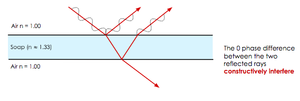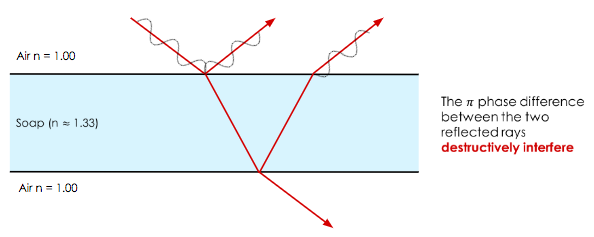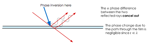 For a very thin layer of material (\( t << \lambda \)) this will cause destructive interference.