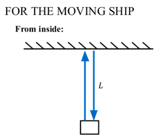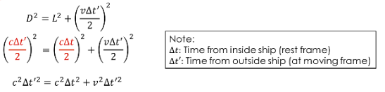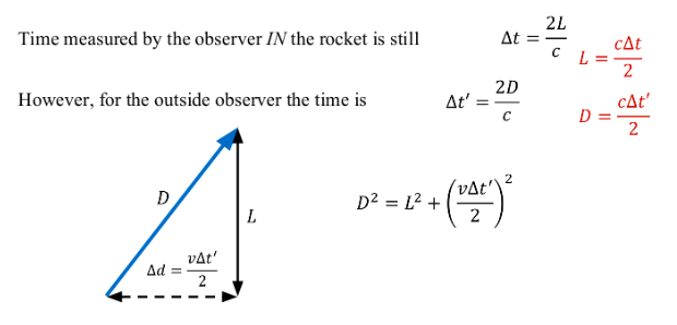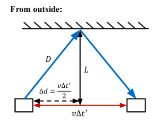 Note that \( \Delta t'\) is the time for light to go up and down the outside frame of reference.