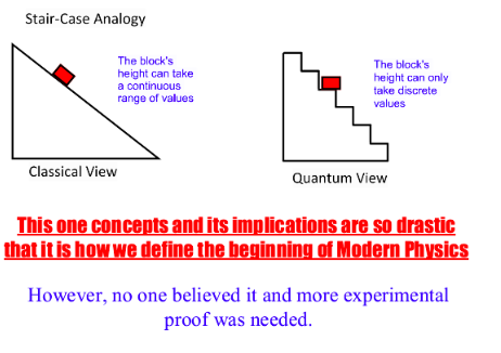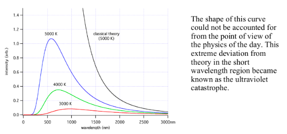 German physicist Max Planck was able to empirically fit the blackbody curve by using a trick from statistical mechanics whereby the energy a particle has must be a multiple of a smallest piece of energy. Energy is radiated in packets called quanta.