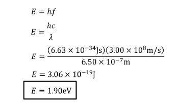 How much energy does red light (650nm) have? Answer in Joules (J) and Electronvolt (eV)