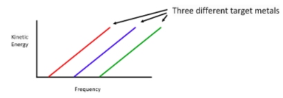 The kinetic energy of the released electrons in proportional to the frequency of incident light and below a threshold frequency no electrons are released.