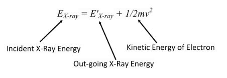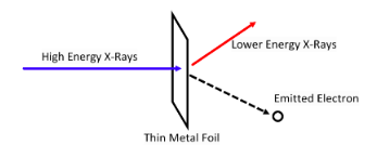 Similar to the Photoelectric effect but instead of visible light, high energy X-rays are used. What Compton found was that electrons where still ejected BUT at an angle and lower energy X-rays were also detected.