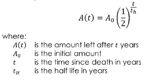 The amount of C-14 left in a fossil or other dead organism can be modelled by: