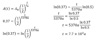 If a material is found to have 37% of the C-14 it is supposed to have in it, how long has it been since it died?SOLUTION: