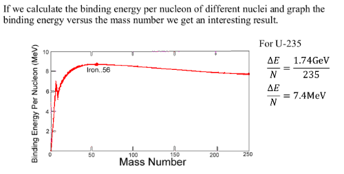 Large nuclei (mass greater than 56) tend to break apart, undego fission, to increase the binding energy. The higher the binding energy the more stable the nuclei.